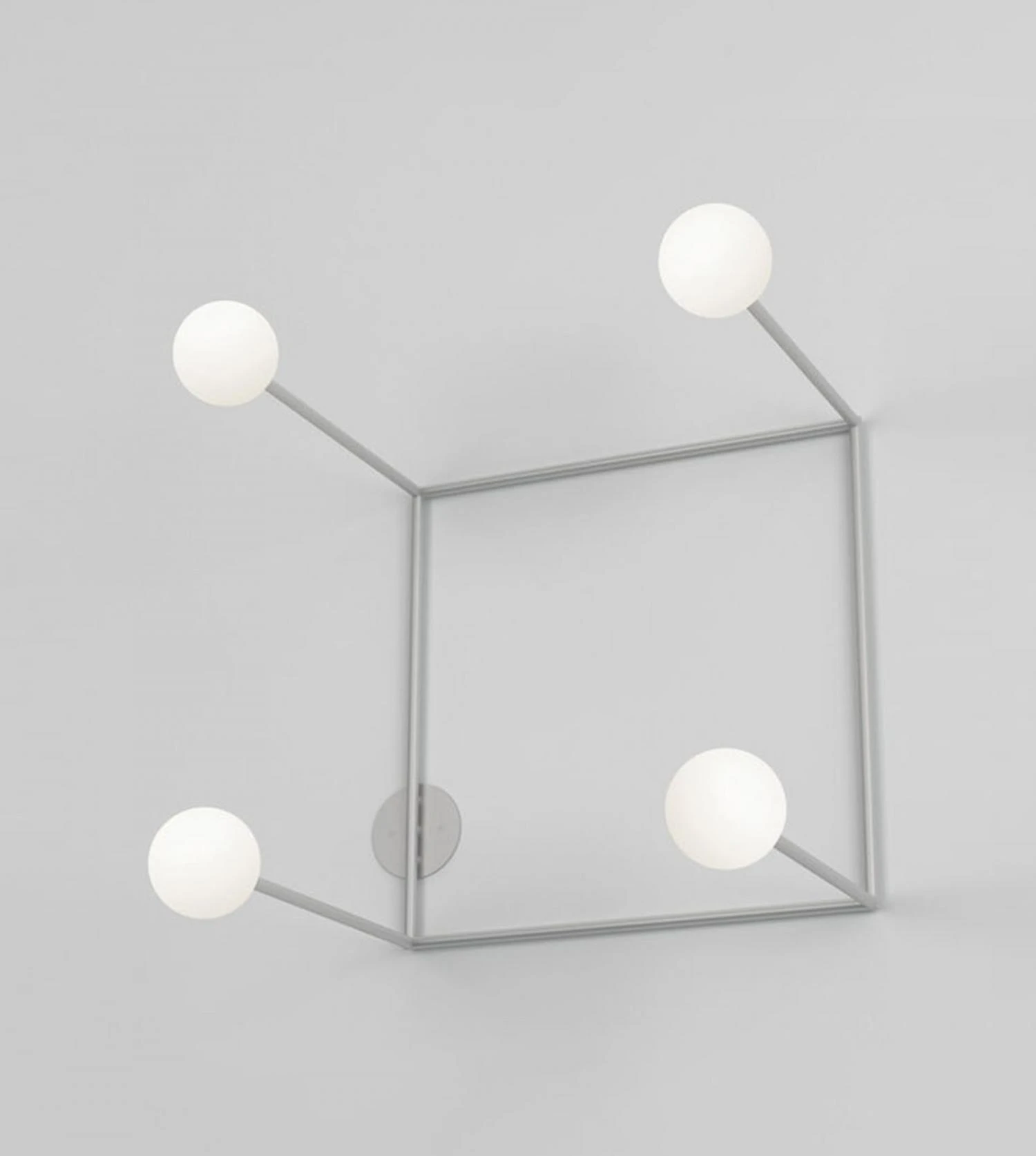 Avec son applique Floating Atelier Areti fait entrer le luminaire design dans une nouvelle dimension. Wall light originale, fascinante et architecturale, la lampe murale Floating imaginée par la maison Areti ressemble à une véritable leçon de géométrie dans l’espace. Avec sa structure carrée de 23 cm de côté et ses 4 branches perpendiculaires à l’extrémité desquelles autant d’ampoules ont trouvé place, l’applique Floating Areti crée un effet d’optique saisissant, une illusion de flottement. Pièce décorative hors norme, la lampe Floating Areti est également une solution d’éclairage design performante grâce à ses 4 ampoules réparties en carré. Luminaire 3D, prisme lumineux, l’applique Floating dépasse le cadre traditionnel de la lampe domestique pour s’inscrire dans une nouvelle dimension. L’objet du quotidien devient merveilleux et changeant en fonction de l’angle choisi pour le regarder. Disponible avec plusieurs finitions et matériaux (laiton brossé, nickel, métal thermolaqué, etc.) l’applique design Floating Areti peut intégrer une grande variété d’intérieurs, des plus classiques au plus tendance. Luminaire atypique en volume, l’applique Floating Areti offre un éclairage délicatement travaillé avec son jeu d’ombre et de lumière. Lampe murale architecturale, l’applique Floating Areti trouvera sa place au-dessus d’un sofa dans un séjour, à proximité de la table d’une salle à manger ou dans une chambre à coucher. Depuis 2008 la maison Areti bouscule l’univers du luminaire design avec ses créations artisanales (les appliques Floating sont fabriquées en Allemagne à la main) aux influences multiples : dans la nature pour les appliques Alouette ou dans la géométrie avec les appliques Triangle en laiton (wall lights disponibles chez BLOU). Avec son applique murale design Floating Atelier Areti poursuit ses heureuses expérimentations lumineuses qui ne manquent pas de relief.