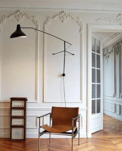DCW, éditeur français depuis 2008, voyage dans le temps et l’espace à la recherche du beau. La marque basée à Paris propose aux amateurs de design d’en découvrir les pièces iconiques à travers des rééditions de luminaires légendaires, à l’image de la collection Mantis conçue en 1951 par Bernard  Schottlander, talentueux sculpteur, soudeur et designer. L’applique Mantis BS2 DCW est une variation des lampadaires BS1 et BS1 B (disponibles chez BLOU), graciles et graphiques, fascinants et élégants. Comme l’ensemble des pièces de la collection, l’applique BS2 défie les lois de la gravité et semble prendre vie comme un insecte longiligne dont l’adhérence permettrait de tenir en équilibre sur une surface verticale ou un plafond. Puissante malgré la finesse de sa ligne, elle veille avec bienveillance sur les intérieurs classiques ou contemporains, offrant une chaleureuse lumière, facilement orientable. Fonctionnelle elle se plie à vos envies de lecture dans un moelleux canapé ou illumine une jolie tablée. Idéale dans un espace domestique, l’applique Mantis BS2 DCW  toute d’aluminium et d’acier peut aisément changer de décor et habiller des lieux dédiés à un usage professionnel en flottant au-dessus d’un comptoir ou d’un bureau. A la manière d’un superhéros elle marche sur les murs, mais nous épargne les toiles d’araignée.