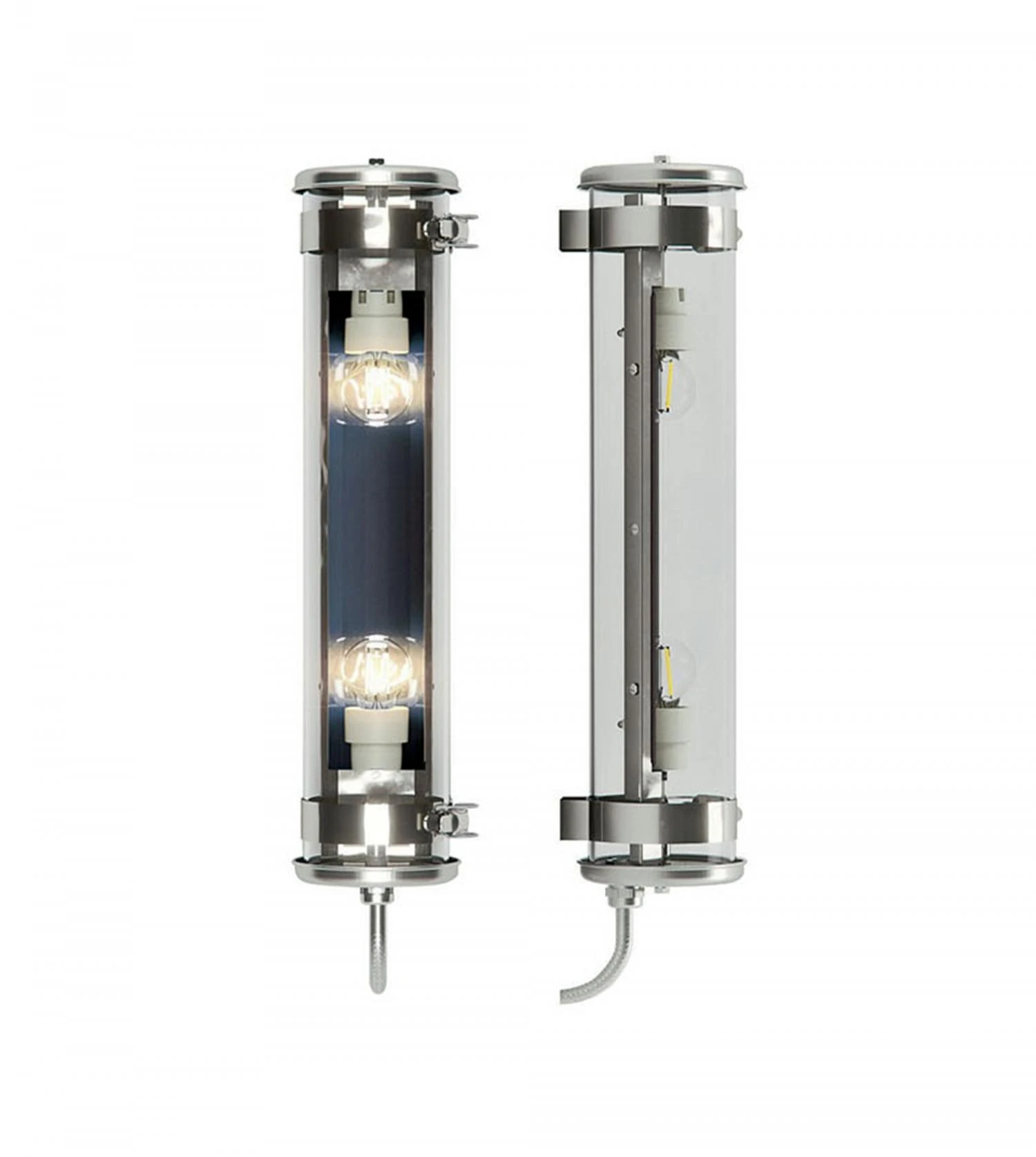 Matériaux : tube en verre borosilicaté inox, colliers et flasques en inox marin, réflecteur en aluminium anodisé