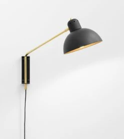 Version mini de l’applique murale Waldorf large (disponible chez BLOU), le luminaire signé Lambert et fils s’impose avec allure dans la gamme sobre et chic venue du Québec. Avec sa structure en graphite ou en laiton, selon la finition choisie, et un abat-jour noir en acier thermolaqué et aluminium, la petite applique Waldorf, chic et graphique, apporte une touche résolument design à tous les intérieurs. Une signature épurée et élégante parfaite pour relever avec subtilité l’ensemble d’une décoration. Style classique ou tendance, elle sublime tous les décors, qu’elle soit seule ou accompagnée. Dans une chambre à coucher, un salon, un couloir ou une salle à manger elle joue admirablement sa partition, en offrant une ambiance lumineuse délicieusement cuivrée. Esthétique, l’applique Waldorf small est également très fonctionnelle à l’image des créations signées Lambert&fils grâce à sa tige pivotante qui se plie en 4 pour vous offrir l’éclairage le plus adapté. Depuis 2010 le monde du design compte un enchanteur de plus, la maison Lambert&fils, spécialisée dans le luminaire haut de gamme qui décline sa créativité à travers des pièces originales et audacieuses sublimant des matériaux nobles et généreux. Tout simplement brillant.