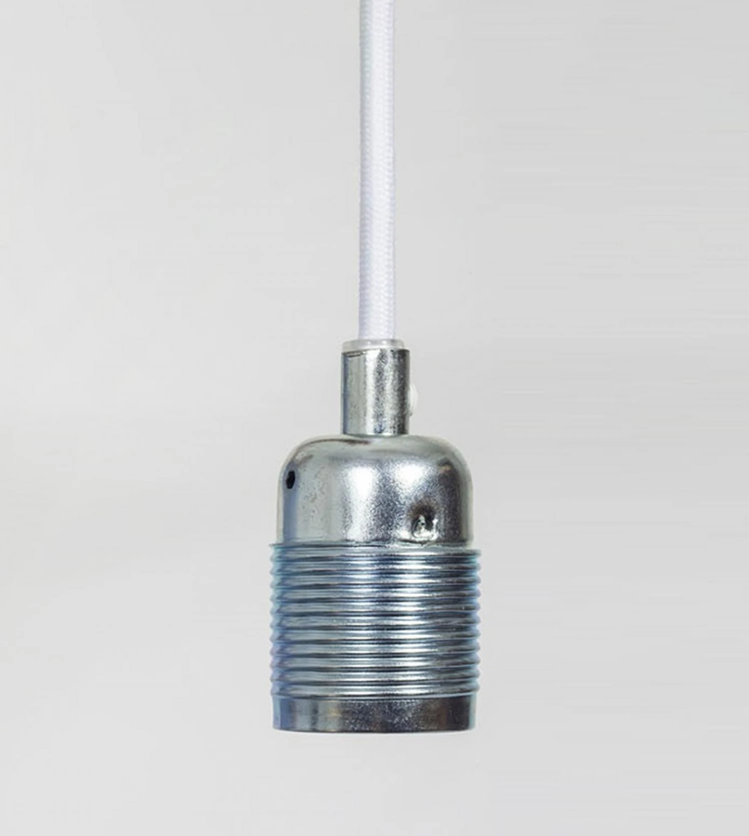 Une suspension minimaliste et Ă l’esprit vintage: un cable en textile et une douille en mĂ©tal disponible dans de nombreuses finitions.Â