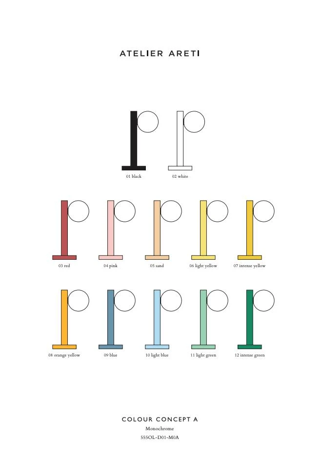 Petit luminaire monochrome composé d’éléments géométriques, la lampe de table tube with globes and cones Concept colour A de la marque Atelier Areti séduit par son efficacité, sa présence graphique et son haut potentiel décoratif. Une création design signée Gwendolyn et Guillane Kerschbaumer qui donne de la personnalité à un espace de vie ou de travail.