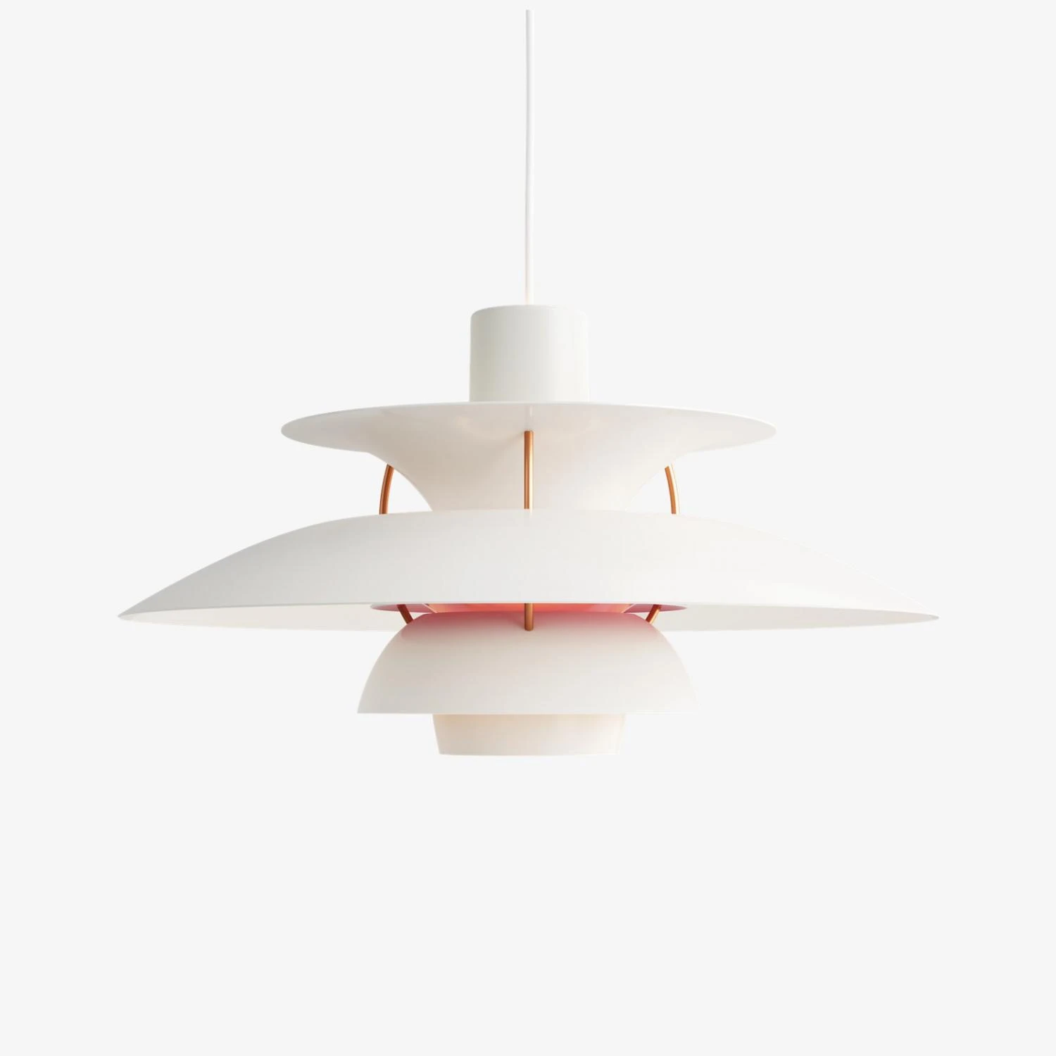 La suspension PH5 fournit une lumière 100% anti-Ă©blouissante. Elle est conçue selon le principe de l’ensemble abat-jour rĂ©flĂ©chissant, qui dirige la majeure partie de la lumière vers le bas. Ensuite la suspension Ă©met une lumière dirigĂ©e vers le bas ainsi que vers les cĂ´tĂ©s, et s’Ă©claire elle-mĂŞme.Â