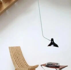 La collection de luminaires Mantis traverse allègrement les époques depuis 1951, date à laquelle le designer et sculpteur Bernard Schottlander a imaginé une série de lampes inspirées des célébrissimes mobiles de Calder. Pour le plus grand plaisir des amateurs de design et de décoration, l’éditeur français DCW propose l’ensemble de la gamme iconique. Du lampadaire Mantis BS1,disponible chez BLOU, le plafonnier BS4 a gardé la ligne graphique, aérienne et chic. Un bras longiligne, semblable à un fil, descend délicatement du ciel. Prolongé d’un abat-jour en forme hélicoïdale il permet de créer une ambiance lumineuse chaleureuse, idéale au-dessus d’une table à manger ou d’un canapé. Pour les intérieurs ayant une grande hauteur sous plafond, DCW éditions propose le luminaire BS4 L, version « allongée » avec une structure plus étirée. La gamme Mantis propose de multiples solutions d’éclairage, toujours raffinées, pensées pour chaque situation : lampadaires ayant les pieds sur terre (BS1 et BS1 B ) ou appliques équilibristes (BS2 et BS2 mini). Plafonnier avec bras noir satin ou gris vert selon la finition choisie, la lampe Mantis BS4 DCW s’adapte à tous les décors, classiques ou tendance. Une signature graphique prolongée d’un halo lumineux, un design intemporel.