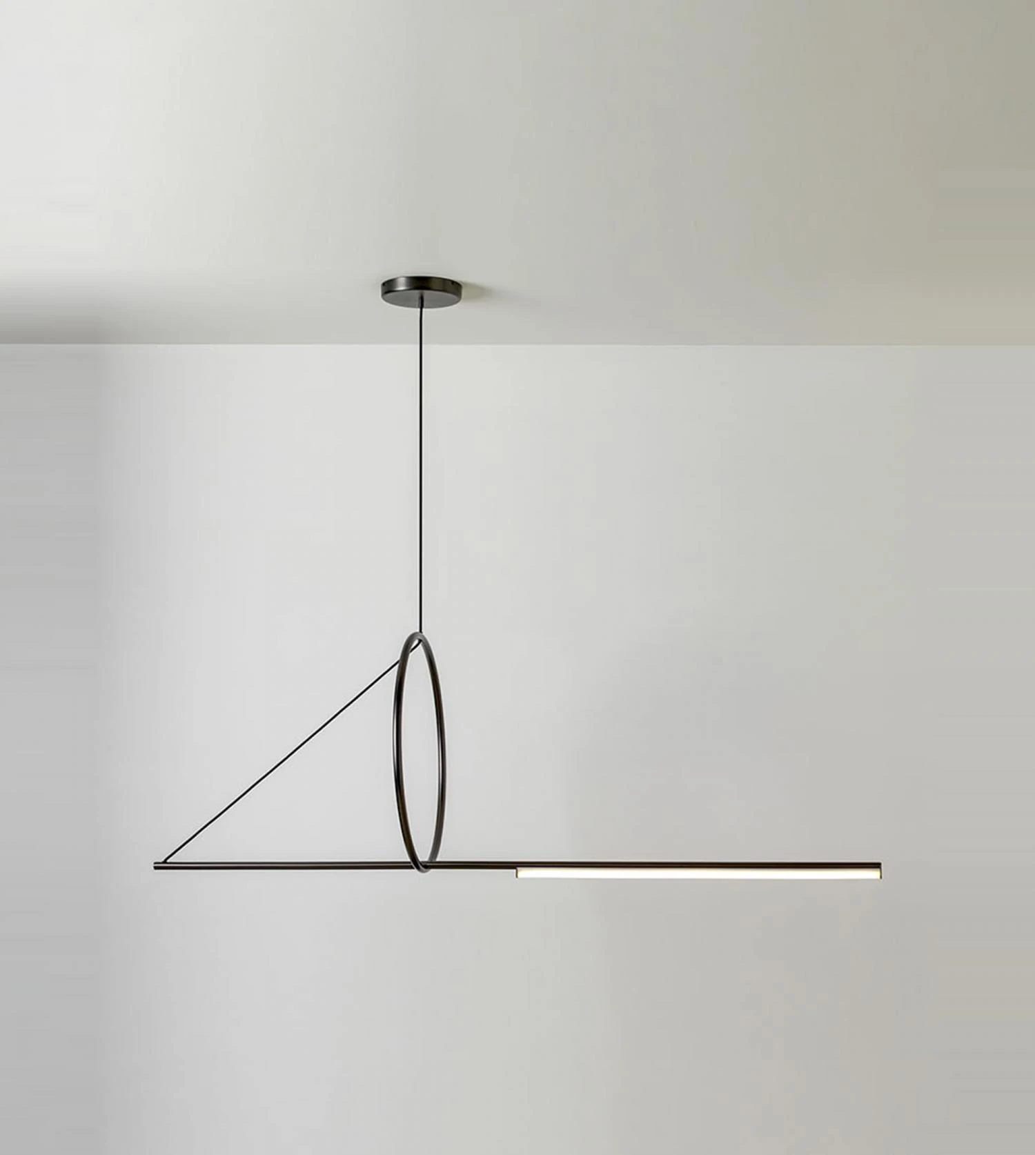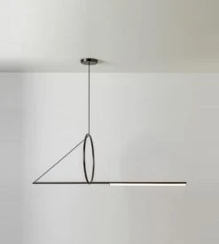 Luminaire minimaliste grand format, la suspension Cercle et Trait signée Studio Pool pour CVL lighting est une solution d’éclairage contemporaine fascinante et élégante. Géométrique, graphique, chic, cette pendant light design originale aérienne et poétique séduira les amateurs de décoration intérieure à la recherche d’une solution d’éclairage hors norme de qualité exceptionnelle. Fabriquée en France, à l’image de l’ensemble du catalogue CVL, cette suspension sculpturale en laiton massif se compose de deux figures géométriques simples, un cercle et une droite qui se frôlent et tiennent dans les airs comme par magie. Le ballet aérien né de la rencontre entre ces deux figures donne naissance à une lampe graphique légère, un esquisse lumineuse délicate et harmonieuse qui met en scène le quotidien et réveille les décorations endormies grâce à sa personnalité atypique.