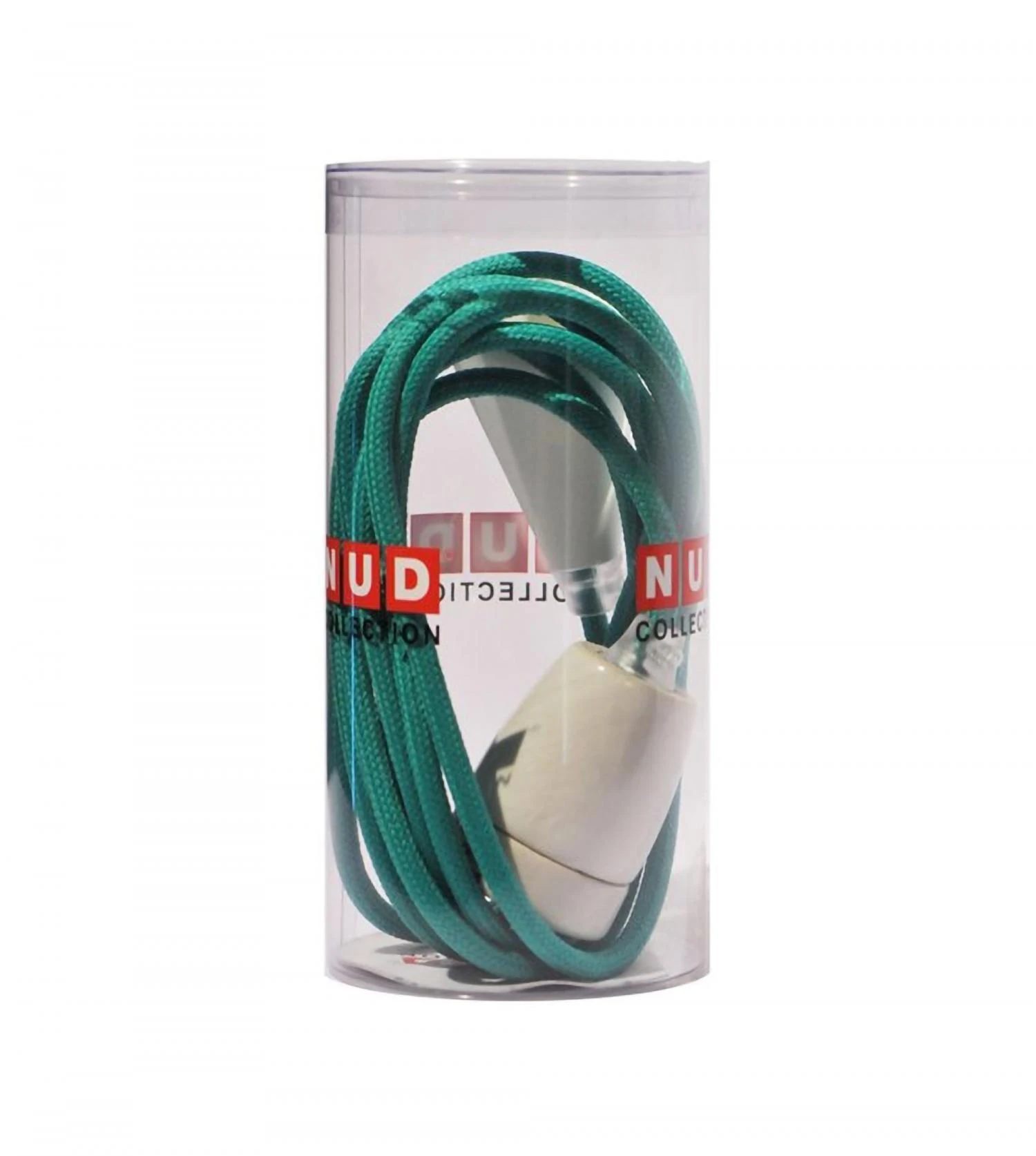 Cable électrique de 3m gainé de textile et douille en porcelaine. Domino et cone pour cacher la connection électrique sont également fournis.